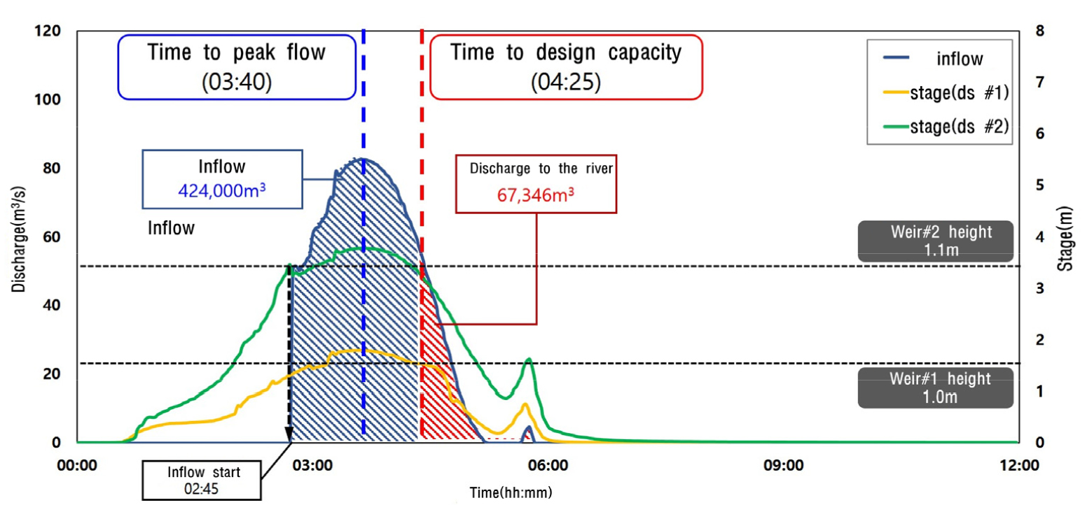 - In response to the increasing frequency of extreme rainfall events due to climate change, the Seoul Metropolitan Government is planning to construct additional deep stormwater drainage tunnels to address rainfall volumes that exceed the capacity of existing stormwater systems. This study examines effective inflow control strategies for a planned deep drainage tunnel in the Sadangcheon basin, aiming to mitigate urban flooding during the monsoon season. The XP-SWMM hydrological and hydraulic modeling software was utilized to simulate flood scenarios and assess the impact of inflow control on reducing inundation. The application of inflow control measures resulted in a reduction of inundation area by approximately 34.2% and a delay of approximately 20 minutes in reaching the designed storage capacity. These findings suggest that implementing inflow control during tunnel operation can enhance the tunnel's capacity to manage consecutive rainfall events and significantly improve urban flood prevention.