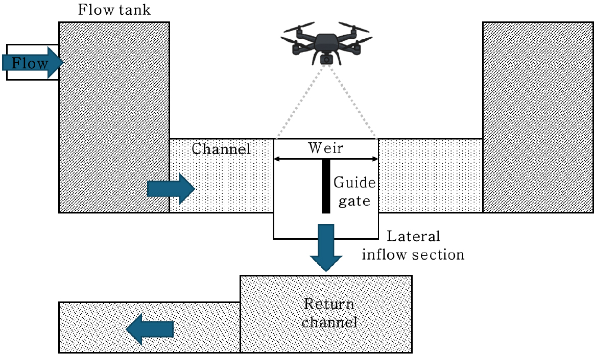 - Due to the increase in impervious surface area caused by urbanization and the rising frequency of heavy rainfall events, urban flooding damage has been occurring repeatedly, and lateral outflow hydraulic structures are being introduced as a countermeasure. However, the lack of accuracy in estimating the flow coefficient (C) under varying inflow and water level conditions presents challenges in the design and practical application of such systems. In particular, existing studies are heavily biased toward numerical model-based analysis, with insufficient experimental validation, thereby limiting their real-world applicability. In this study, experimentally analyzed the effects of water level measurement location (left bank, center, right bank) and water level conditions on discharge estimation and the flow coefficient (C) of lateral flow were experimentally analyzed. Experiments were conducted using three types of channels, and water levels were measured at each section. Based on the collected data, both the standard weir equation and the De Marchi equation were applied to calculate discharge and the flow coefficient (C), and the reliability of each equation was assessed using the coefficient of determination(R2). The results showed that discharge prediction accuracy varied depending on the water level measurement location, with the center or the difference between the left bank and center showing the highest determination (R2) values. In contrast, the right bank water level showed low explanatory power due to irregular flow characteristics. This study proposes an optimal discharge estimation method based on measurement location and flow characteristics in lateral weirs, which is expected to contribute to more accurate hydraulic modeling and the design of urban flood mitigation structures.