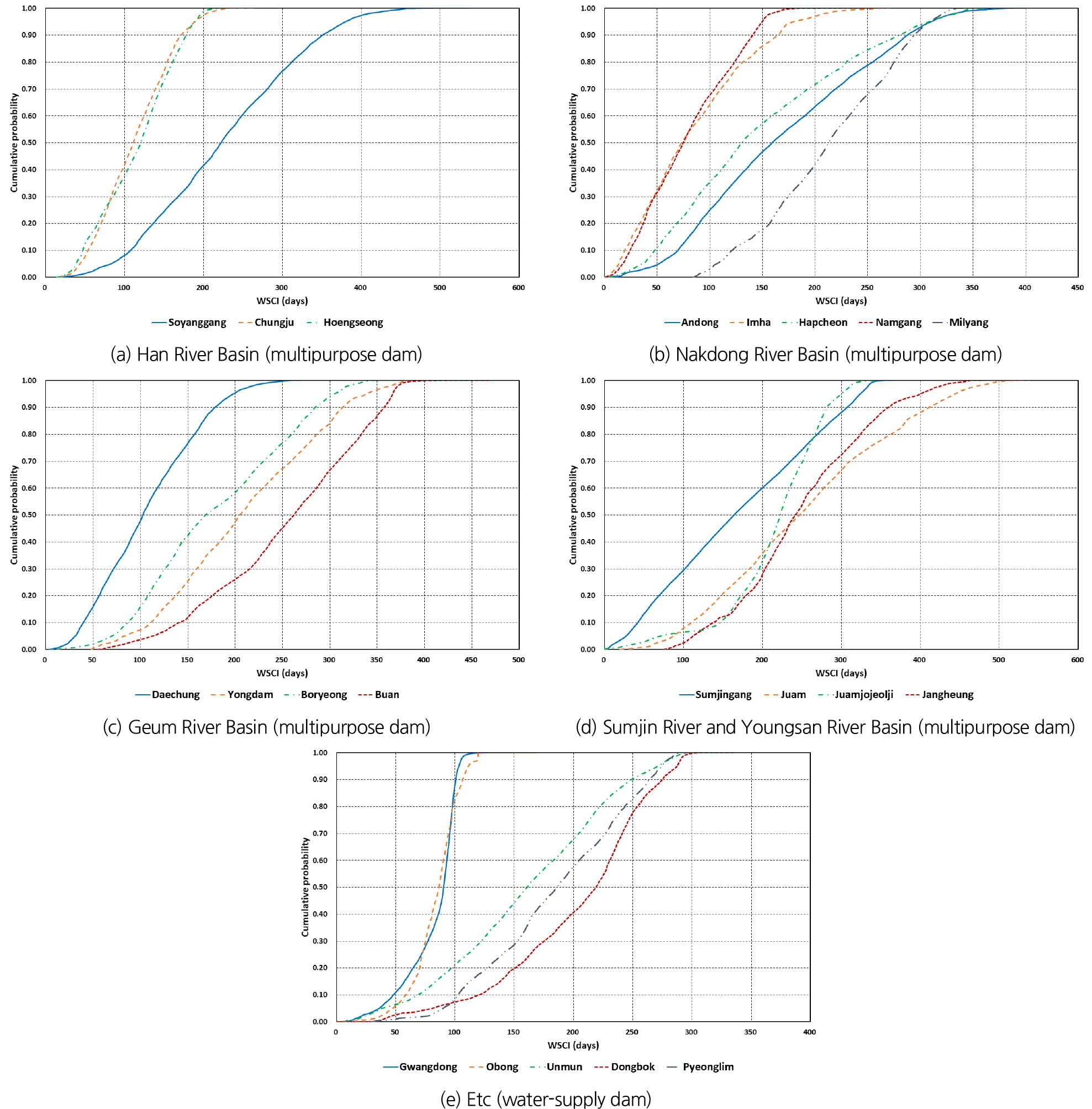 본 연구에서는 일 단위 저수량 자료를 활용하여 물공급능력지수(Water Supply Capacity Index, WSCI)를 산정하고 이를 통해 댐의 공급 기반 가뭄 특성을 분석하였다. WSCI는 …